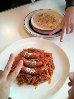 手前は足と肋骨部分。野菜っ気が全く見られないのである。んだー。