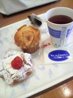スコーンの飲み物として紅茶と行きたいところですが、なぜか写真の奥にはヤクルト・・・。